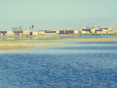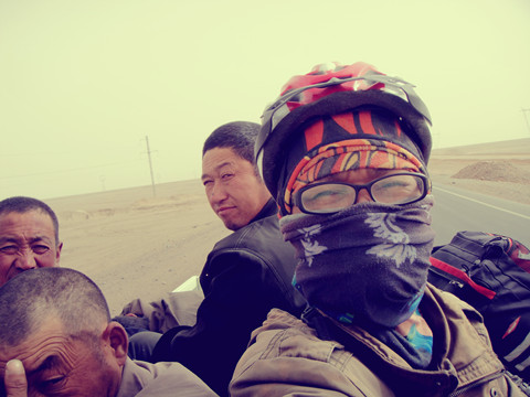 这一路气候路况恶劣,川藏那套在这里完全不适用,水就是生命,在这里就有深刻的体会。下午两点左右开始,风沙就越刮越大,有时只好用推,路面平平,风景平平,见得多了,反尔开始发困,骑着骑着竟想睡了,后来搭了二十公里的车,坐在车斗后面,同当地农民挤在一起,手中拿起相机向外拍照,除了茫茫大漠,什么也没有,地面盐碱化严重地看上去白乎乎一片。见到屋顶上白色一片,初始以为是晨间下的雪,后来才明白过来,这里没雪,只是用不尽的盐。