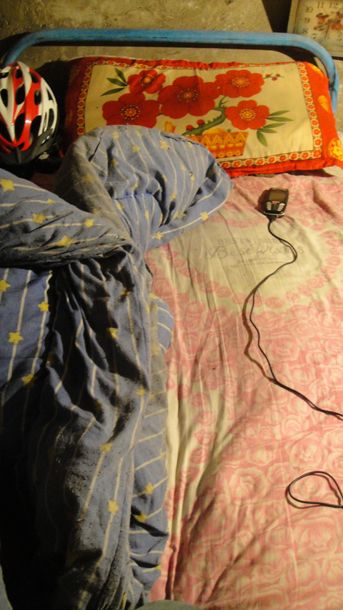 第一次接触广漠,心里多少有些苍茫,这边就是柴达木盆地,到锡铁山,是下午六点半左右,走到这城镇的路口,有个“青年修理部”,在他们门口站了会儿,和俩师傅交谈,后来,小哥邀我住他这,能不激动么?!!这家汽车修理店面积也就二十平米不到,里面放着各种修理设备,往里走两三米就有个小房间两平米左右,这就是他们休息的地方,上下铺,却还有电脑,放好车,去隔壁川菜馆吃晚饭,竟然有七元的蛋炒饭,份量还很足,又要了两个馒头,吃得很实在,一共才花了九元,激动、心满意足。在小房间里和他们聊了会,就一个人去前面的沙野里转了一圈,捡了几块石头,回去的时候,天已经近黑了。