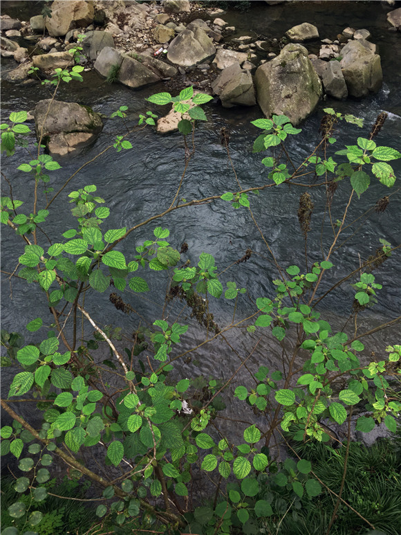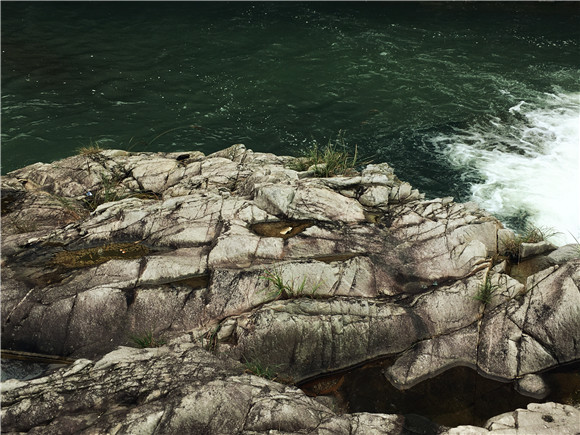侧在黑绿色的山岩头