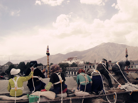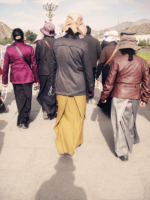 打算去布达拉宫,穿戴好自己满意的行头,出发……清晨的布达拉宫,人流依旧嚷嚷,其中除了少数的游客,大部分仍然是信仰的藏民,随着人流围着布达拉作顺时针行走。