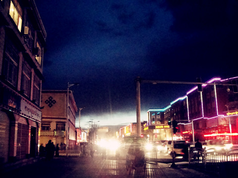 拉萨的一天,原本如此之快,茶馆的三小时,天已黑了,茶馆要关门了……出了茶馆,天已经黑了。