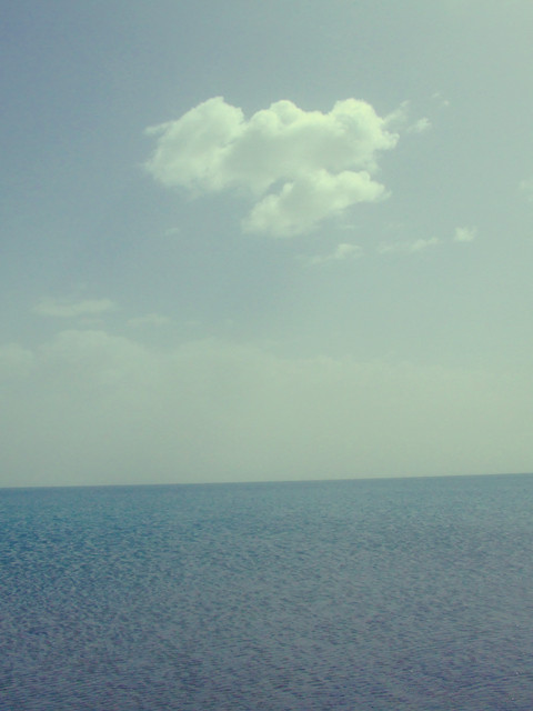 我脱了鞋,将自行车置于水湾,天空灰蓝柔和,白云仪然作态,令人自然融合其中,感受天地人和的自然美,如此感动于世间,只不愿离去。