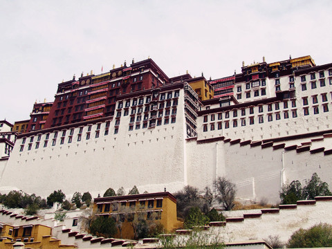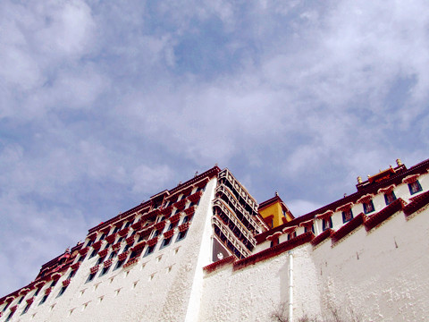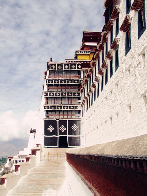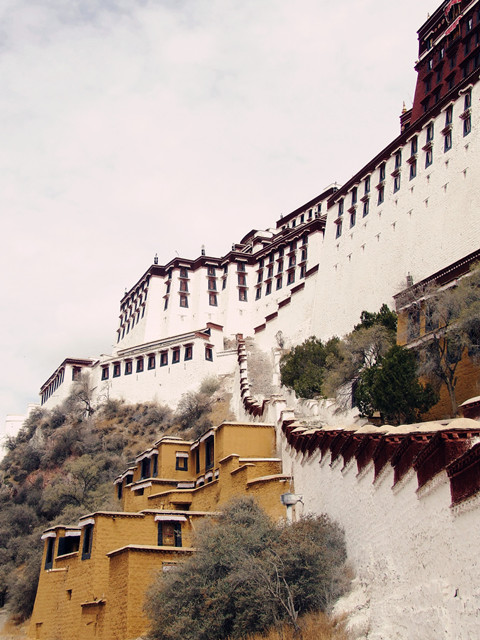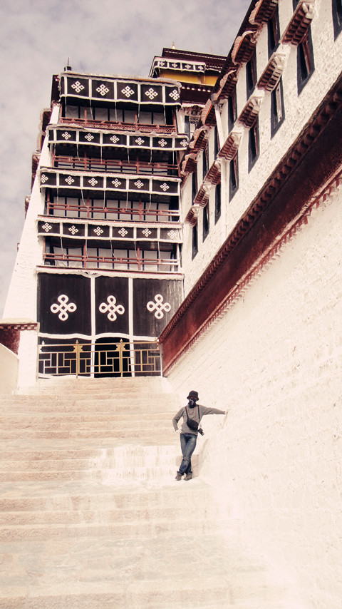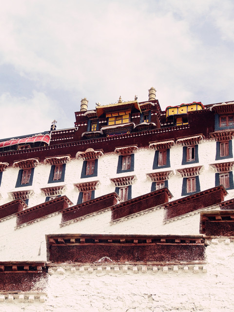布达拉宫,他看起来并不雄伟,从外型上。然后他将自己的体量给游人最大化,他用质感将自己变得厚实、沉稳,以使看他的人获得想象之外的另一种美,这也许是在弥补一种心理上的遗憾。