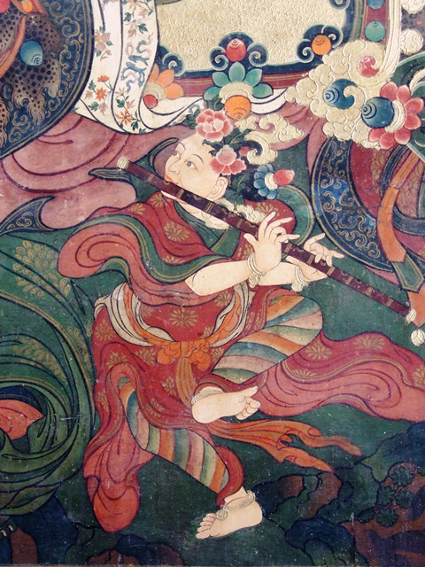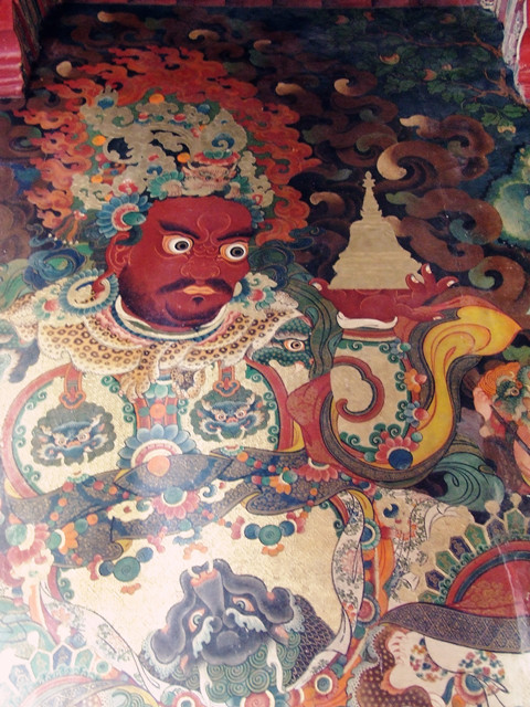 这座达赖的行宫,现在是人去楼空了,只剩得几个管理人员和照例的喇嘛。在积满尘土彿像案台上,这里更显得像似一座巨大的历史遗物,他已失去生命,只因着他曾经主人的伟大和显赫,才使他袭了光芒,并在有限的空间里,释放出原不属于他的威严。布达拉宫的美正是他曾经主人显耀的美和人们对他肆无忌惮地崇拜和对信仰的永恒追随。有时,他更像一个附属品,却实又这样必需,在历史的过去,也曾像故宫一样,只为着主人的身份和地位确立至高无上的尊荣和权势,通过仰望,获得执行的权力。