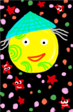 今晚绘画课,接他的时候发现一个有意思的事:所有小朋友的月亮都是侧面的一只眼睛,就他是正面两只眼睛。